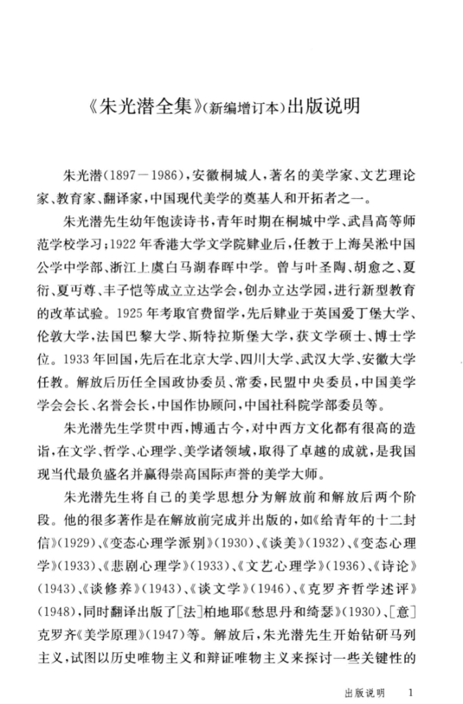 《朱光潜全集(新编增订本)》是对朱光潜早先完整著作收录的一次重大再整理,由中华书局负责编辑出版,其基础在于上世纪八十年代由安徽教育出版社出版的二十卷本“朱光潜全集”,而“新编增订本”则在原有版本的基础上进行结构重划、内容扩充与版本校订。全集所收录的内容极为丰富,既包括朱光潜的主著如《谈美》《文艺心理学》《诗论》等,也涵盖其翻译作品、书信、讲稿、随笔及未曾发表的讲演稿等,力求体现其学术生命的全貌。新版编者在尊重原貌的基础上,用心勘误、补缺,并将各卷依专题整合,以期呑吐朱光潜丰富而立体的学术图谱,学界评价其“系统性、权威性”都较旧版有显著提升。